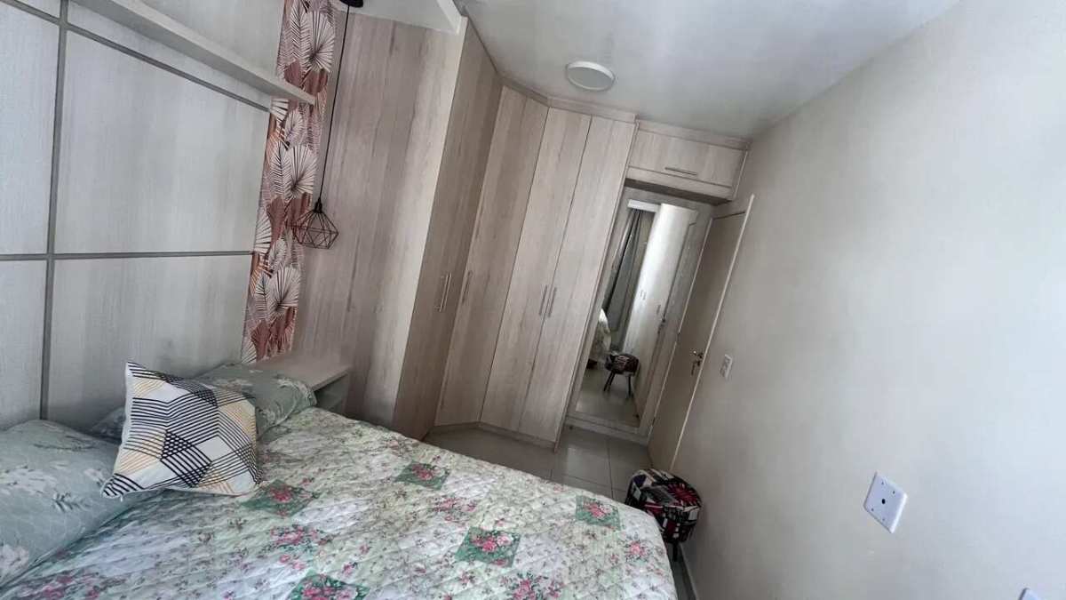 02 dormitórios(Sendo 01 com móveis modulado: Guarda-roupa, painel de cabeceira e criado mudo embutido)