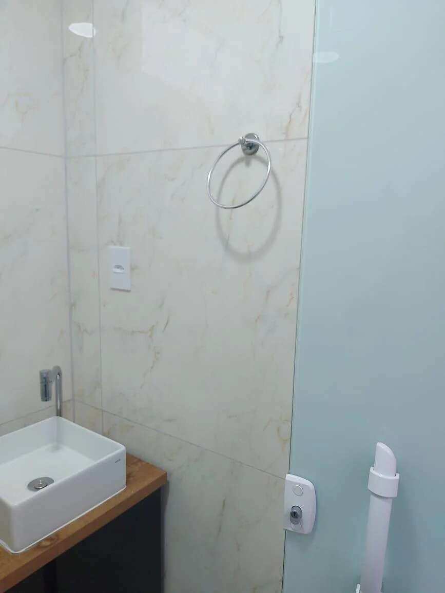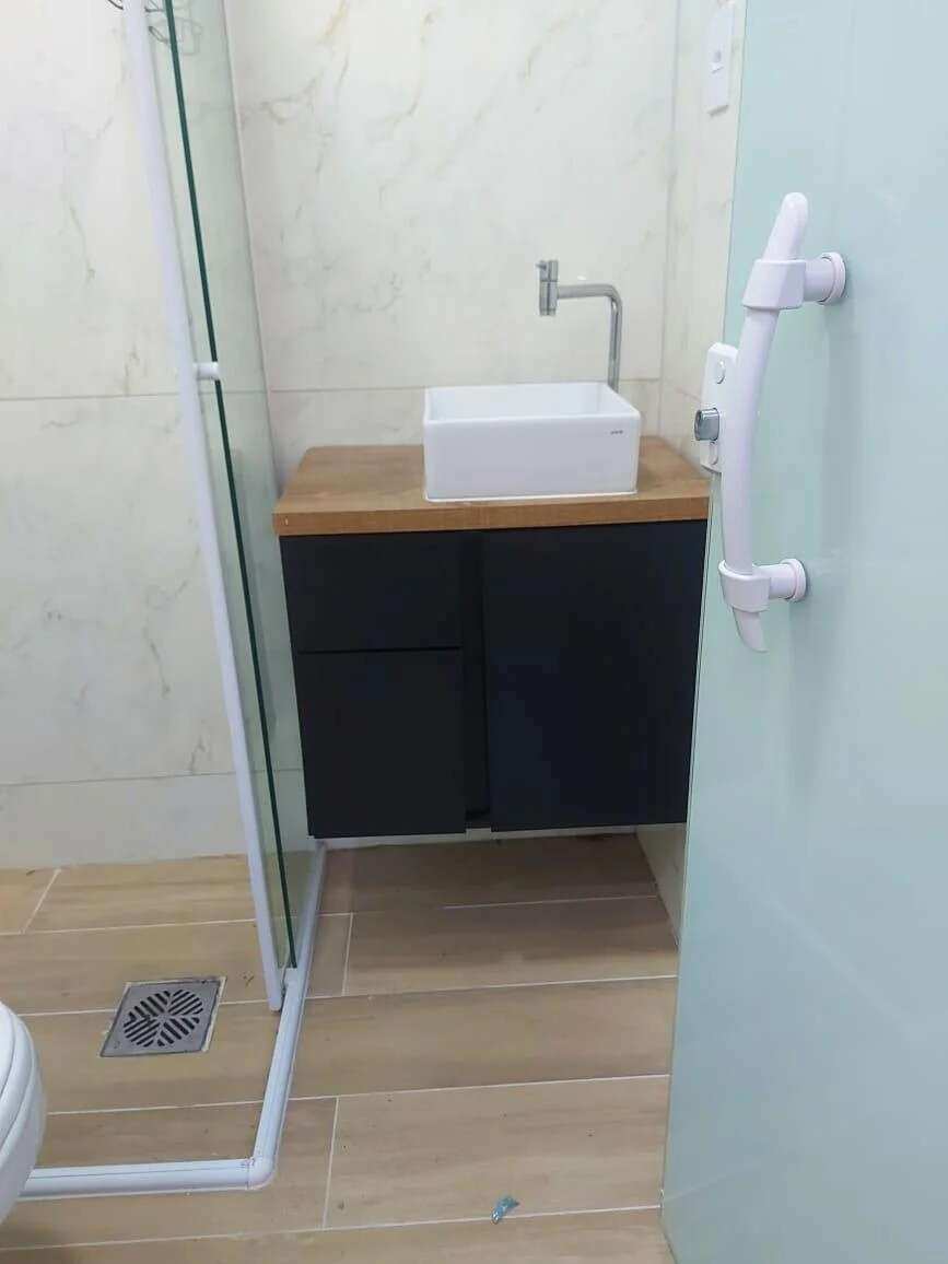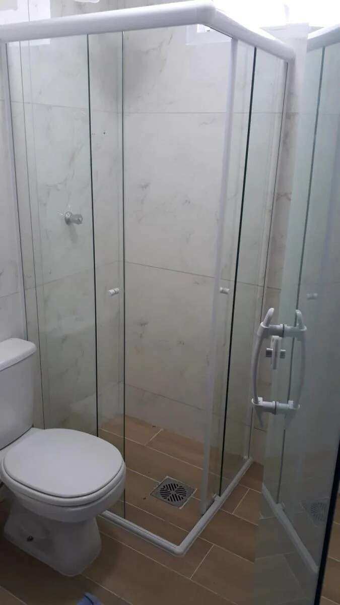 Banheiro com box e porta de blindex, armário e espelho(ficarão no imóvel)