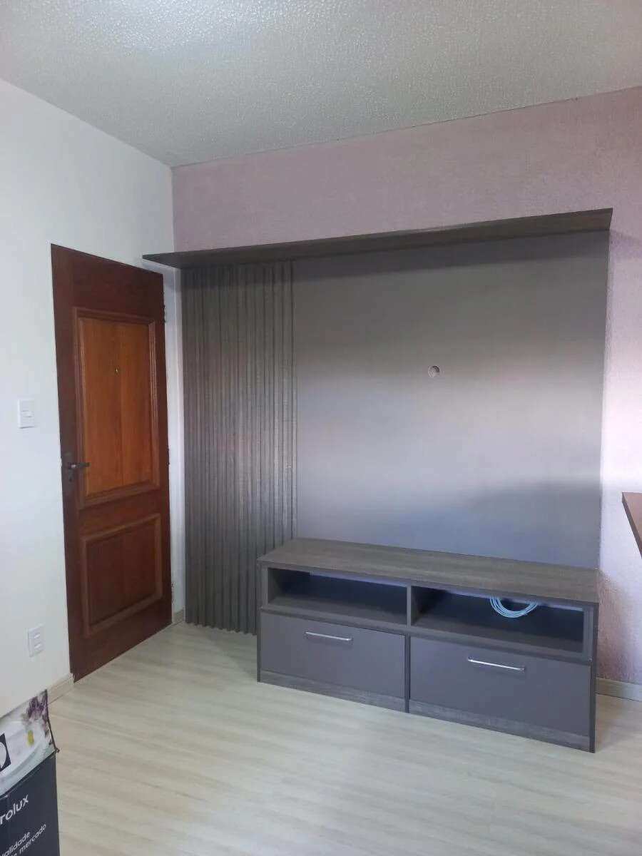 Sala dois ambientes com piso laminado, rack e painel(ficarão no imóvel)